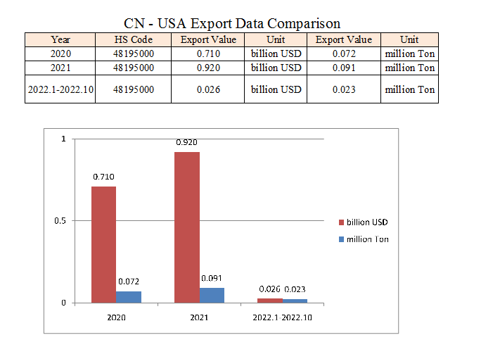 I collect data under 2 HS codes, 48191000 and 48195000. Obviously, 48195000 has less import weight and less value. It drops almost 4 times to 0.023 million tons.